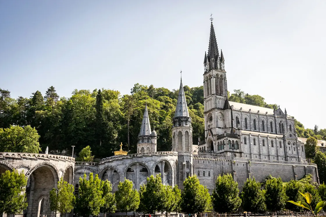 Travel south to Lourdes by flight or high-speed rail and settle into accommodations near the Sanctuary of Our Lady of Lourdes.