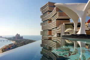 Visiting the Burj Khalifa is a must, and best to do in style. Sip cocktails at the Atmosphere Bar on the 122nd floor and enjoy the breathtaking skyline at a height higher than you’ve ever been before.